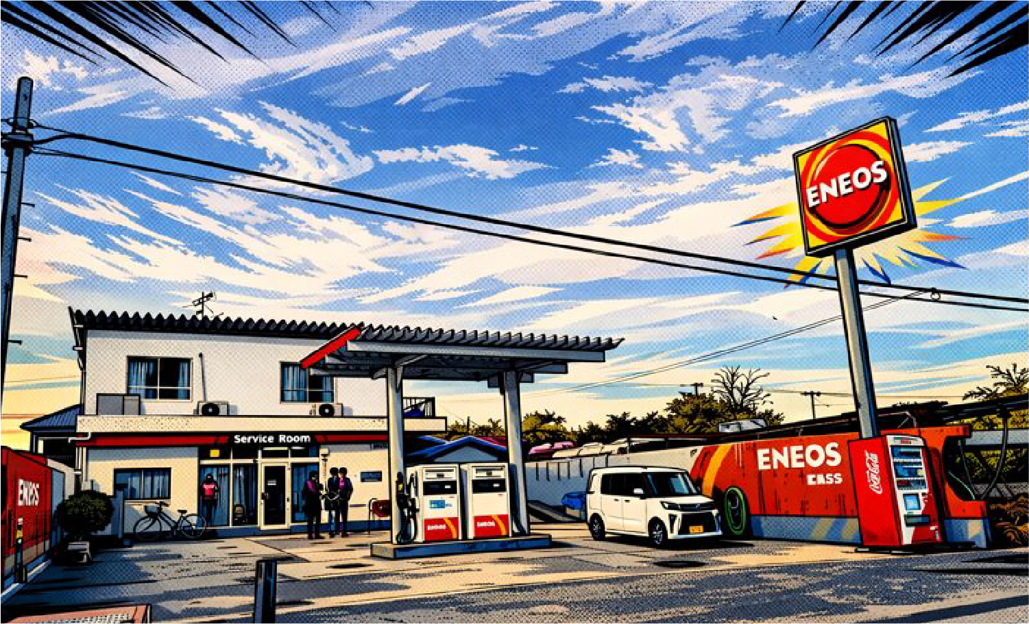 緋田(あけだ)石油は豊島(てしま)の玄関口、家浦港から徒歩約5分。